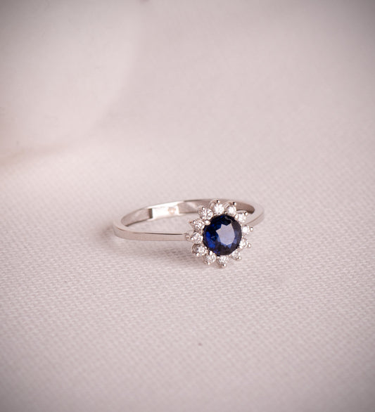 18K SORTIJA ORO BLANCO ZAFIRO 5 MM 0,56 QT Y DIAMANTES 0,17QT. G - VS2