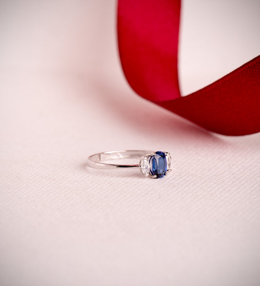 18K SORTIJA ORO DIAMANTES DE LABORATORIO Y BLANCO ZAFIRO DIFUSION 6X4 MM 0,64 QT 0,134QT. E - VS2