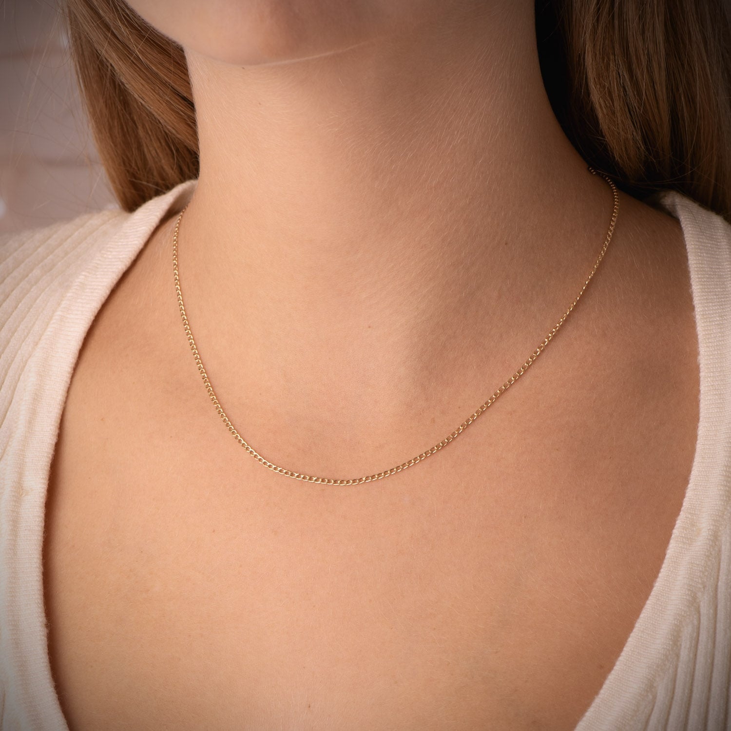 18K CADENA ORO AMARILLO BARBADA HUECA ANCHO 1 MM LONGITUD 40CM