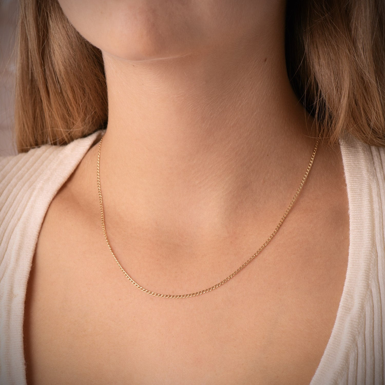 18K CADENA ORO AMARILLO BARBADA HUECA ANCHO 1 MM LONGITUD 45CM