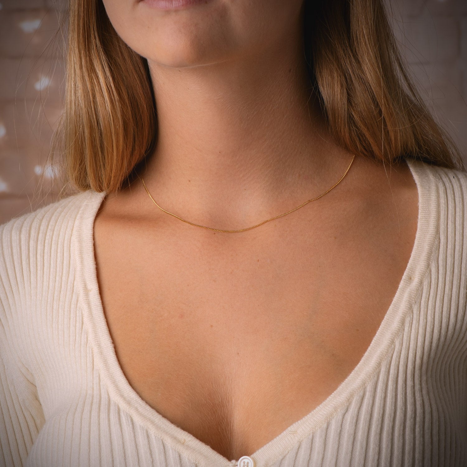 18K CADENA ORO AMARILLO MACIZA BARBADA 40CM 0.8 MM