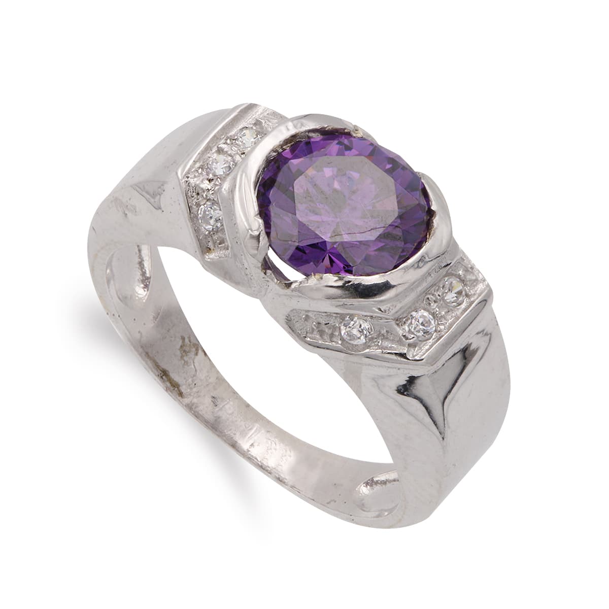 18K SORTIJA ORO BLANCO CON AMATISTA. ANCHO: 8 MM