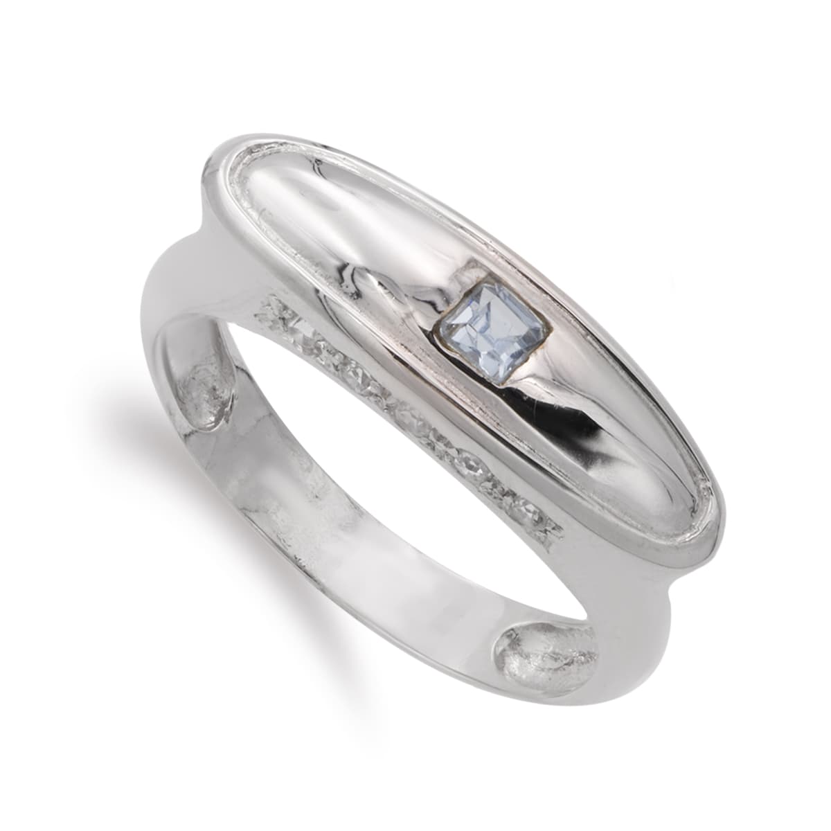 18K SORTIJA ORO BLANCO CON AGUAMARINA CUADRADA Y CIRCONITA. ANCHO: 7 MM