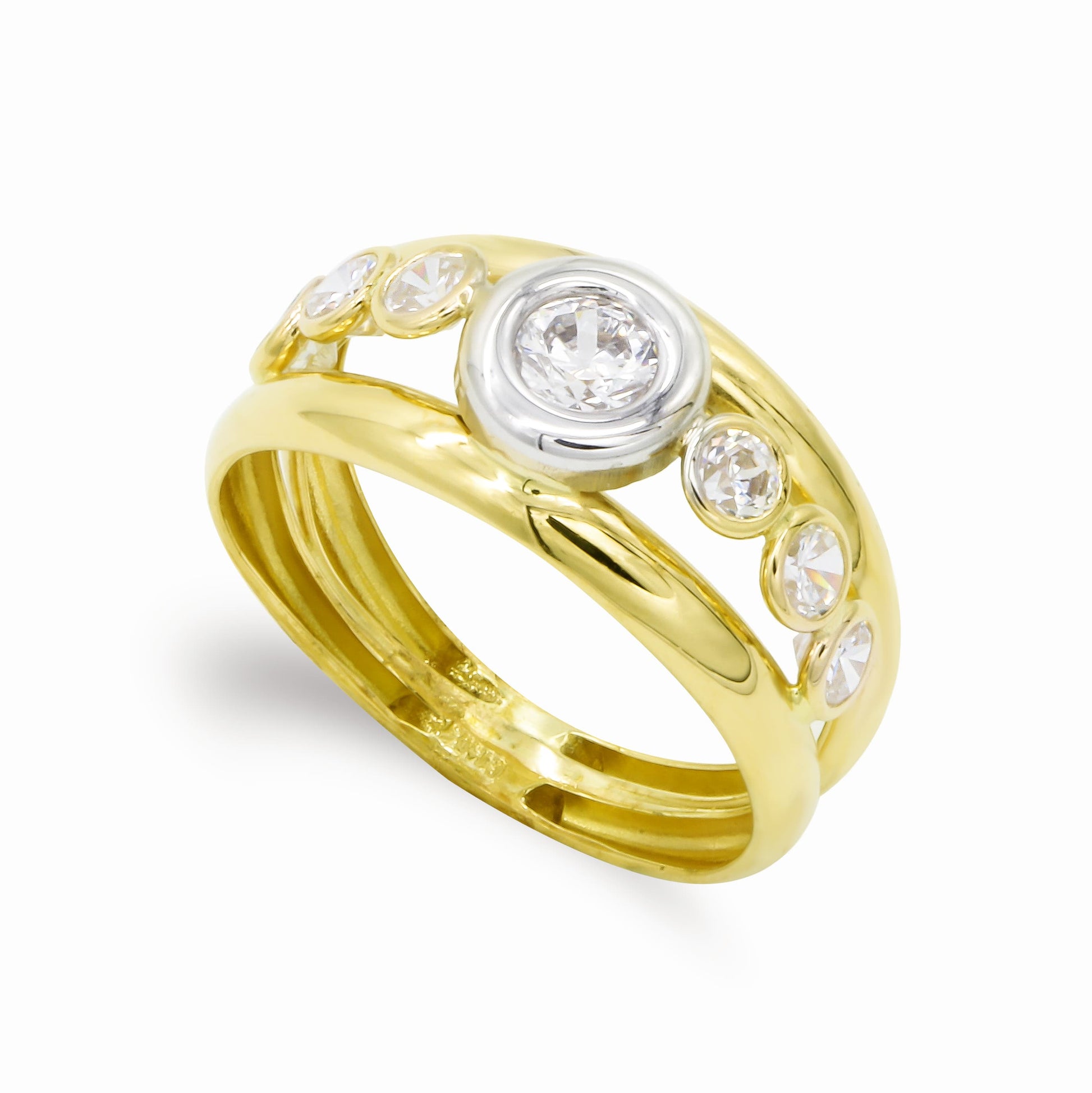 18K SORTIJA ORO BICOLOR DOS CUERPOS CON CHATONES DE CIRCONITAS. ANCHO: 9 MM
