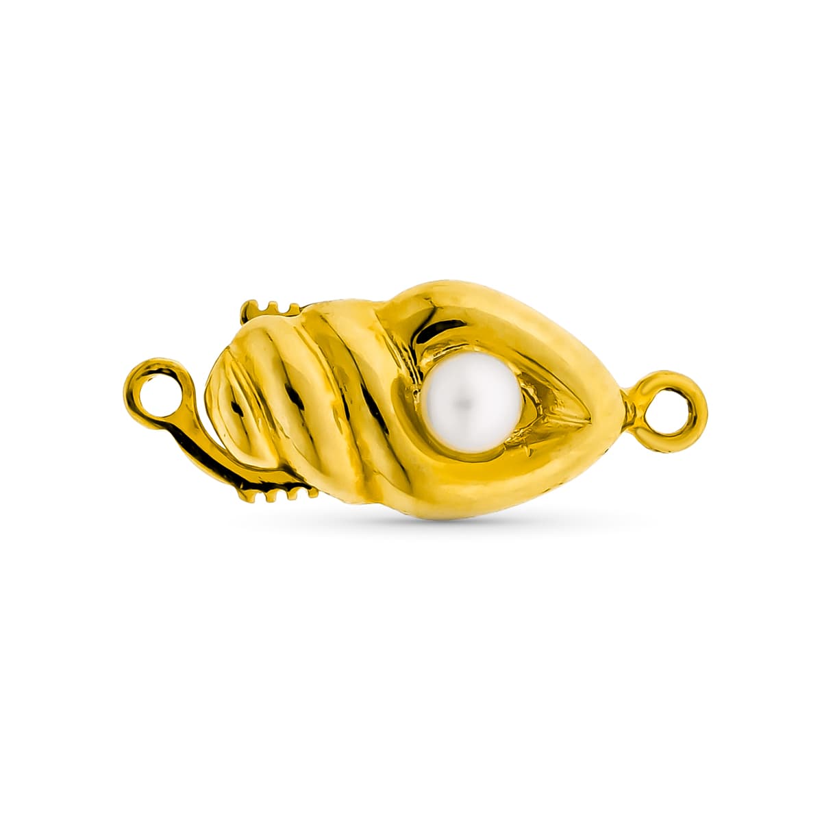 18K FORNITURA CIERRE BROCHE ORO AMARILLO GARGANTILLA PARA 1 VUELTA CON PERLA
