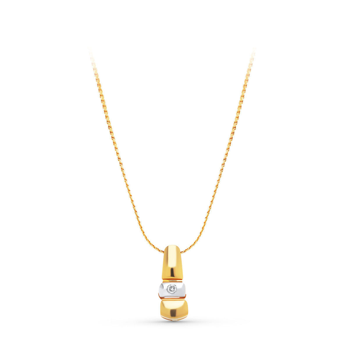 18K COLGANTE ORO AMARILLO BRILLANTE 16X6 MM 0.05 QTS. CADENA 42 CM