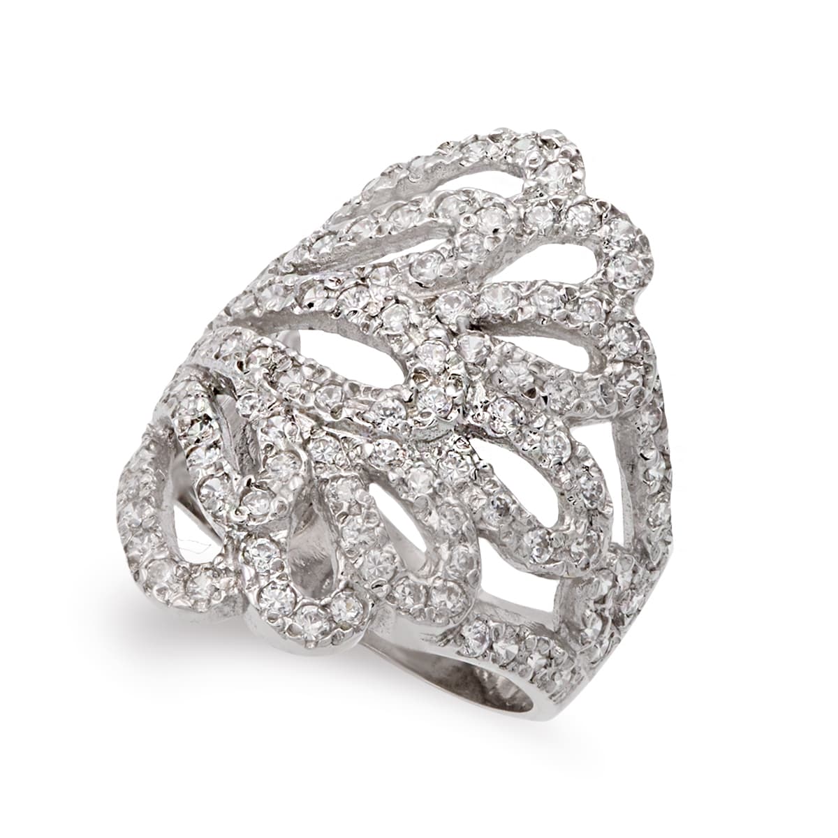 18K SORTIJA ORO BLANCO HOJAS CON CIRCONITA ANCHO 27 MM