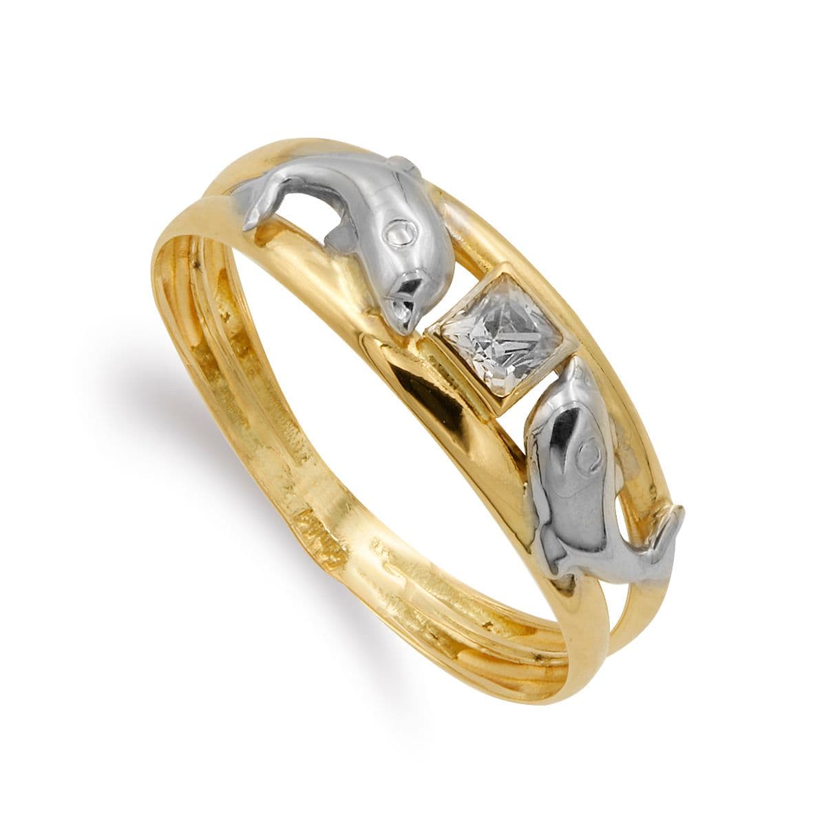 18K SORTIJA ORO BICOLOR DOBLE CUERPO CON DELFINES Y CRICONITAS. ANCHO: 6 MM
