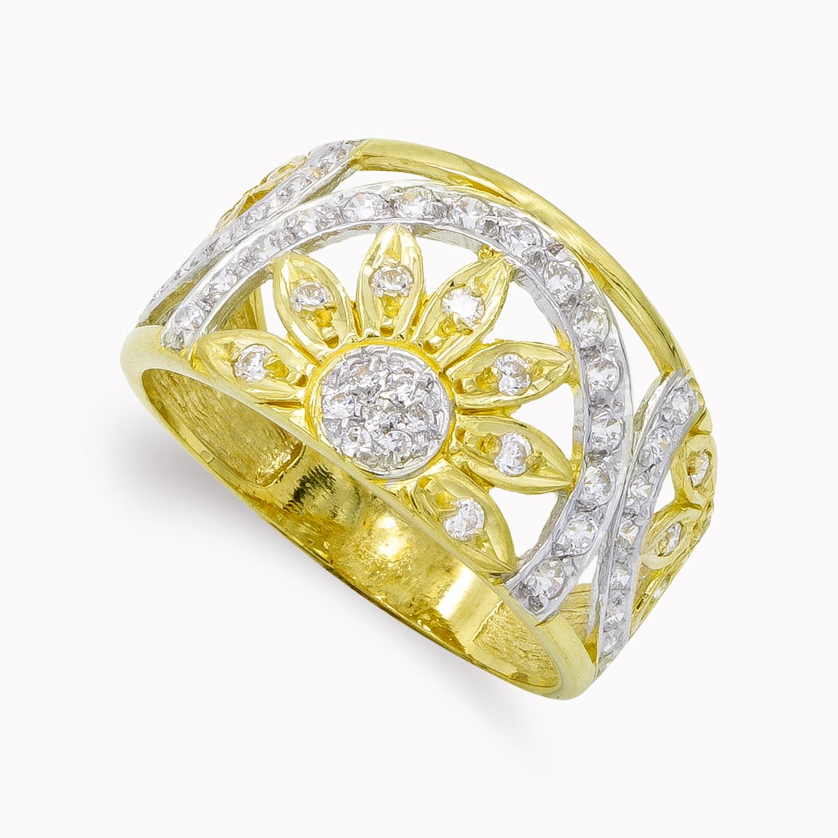 18K SORTIJA ORO BICOLOR SOLES CON CIRCONITAS. ANCHO: 12,5 MM