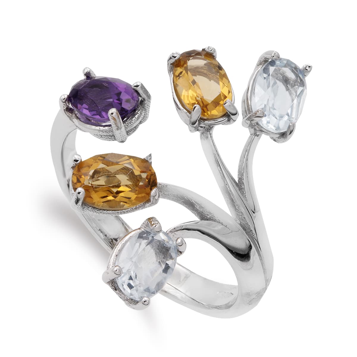 18K SORTIJA ORO BLANCO RAMAS CON PIEDRAS COLOR 24X16 MM