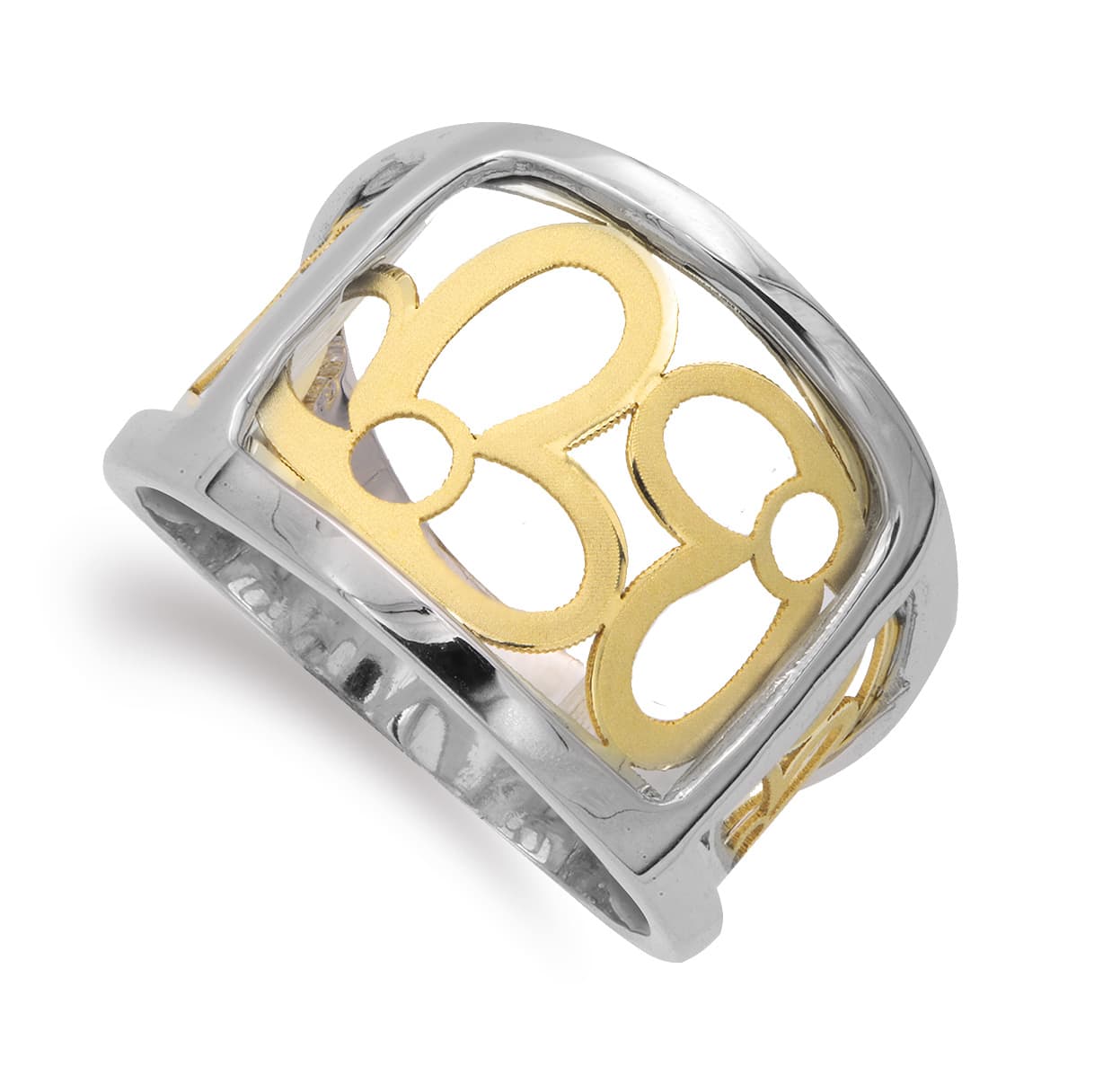 18K SORTIJA ORO BICOLOR CON FLORES CALADAS. ANCHO: 15MM