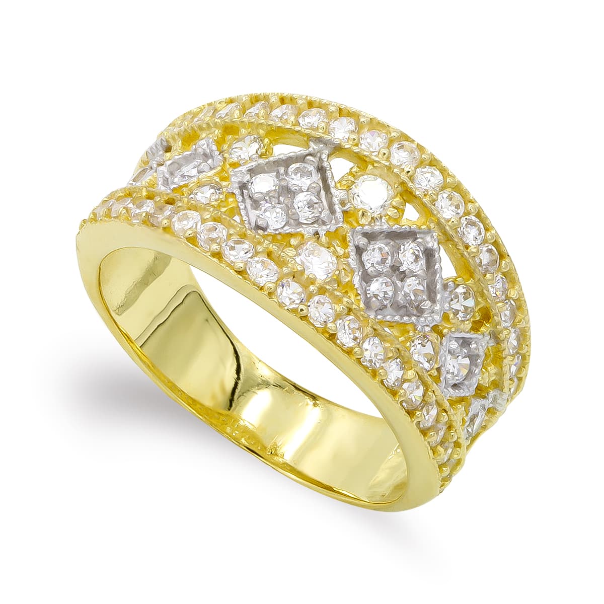 18K SORTIJA ORO BICOLOR Y CIRCONITA CALADA