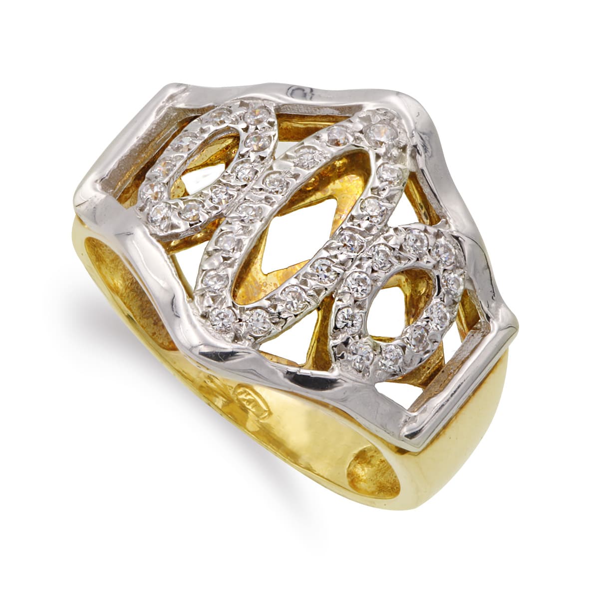 18K SORTIJA ORO BICOLOR MOTIVOS CON CIRCONITAS. ANCHO: 16,5 MM