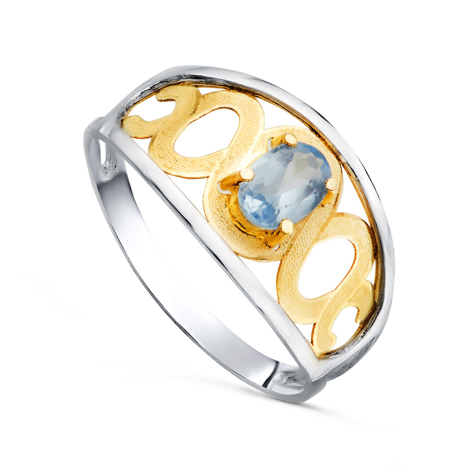 18K SORTIJA ORO BICOLOR MOTIVOS CALADA Y PIEDRA OVAL AGUAMARINA 6X 3,5 MM. ANCHO: 11MM