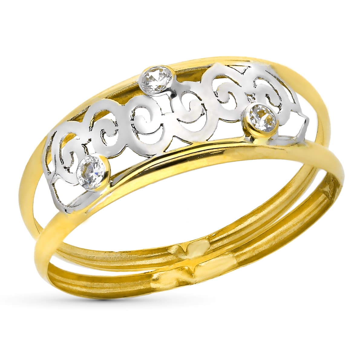 18K SORTIJA ORO BICOLOR DOBLE CUERPO CON MOTIVO CALADO. ANCHO: 6,5 MM