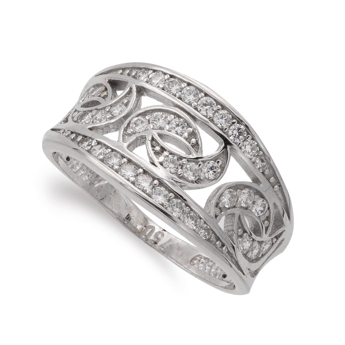 18K SORTIJA ORO BLANCO CON BANDAS Y CIRCONITAS. ANCHO 11 MM