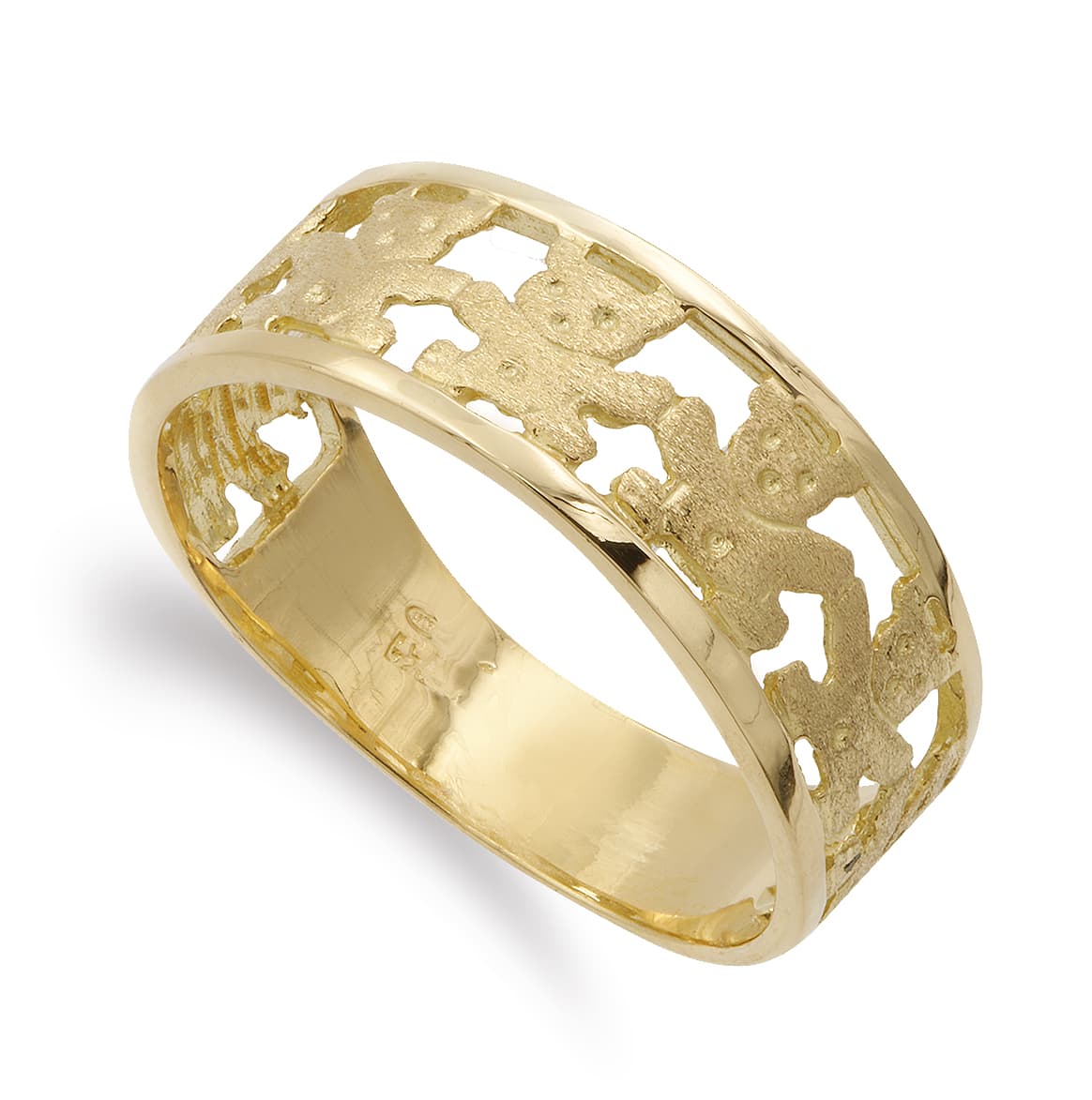 18K SORTIJA ORO AMARILLO OSOS CALADOS EN MATE Y BRILLO. ANCHO 8 MM