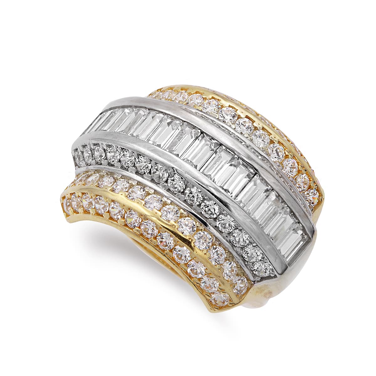 18K SORTIJA ORO BICOLOR CON CIRCONITA Y BARRITAS. ANCHO: 17,5MM