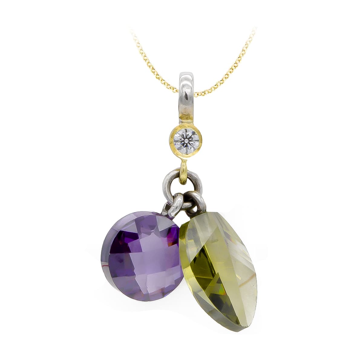 18K COLGANTE BICOLOR PIEDRAS 24X16 MM