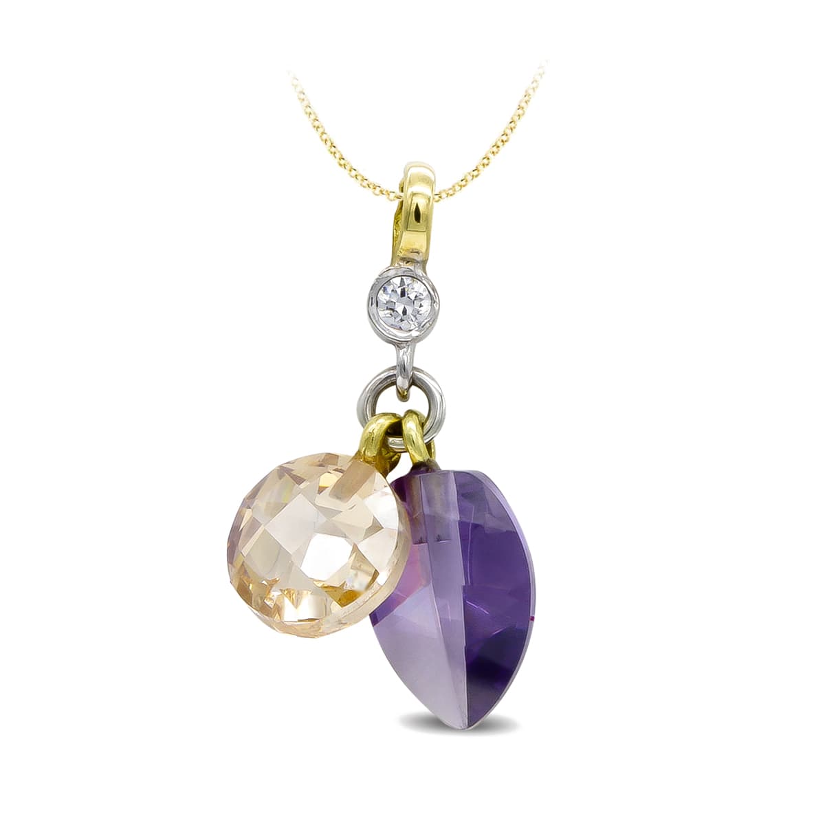 18K COLGANTE BICOLOR AMATISTA Y TOPACIO