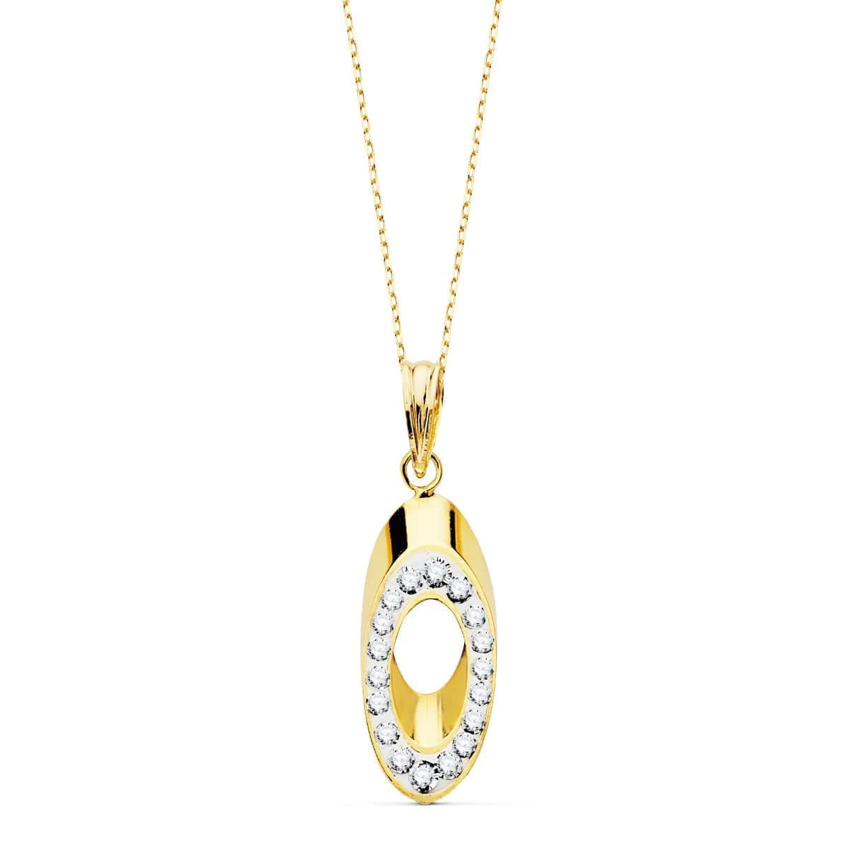 18K COLGANTE BICOLOR OVAL CIRCONITA CON CADENA