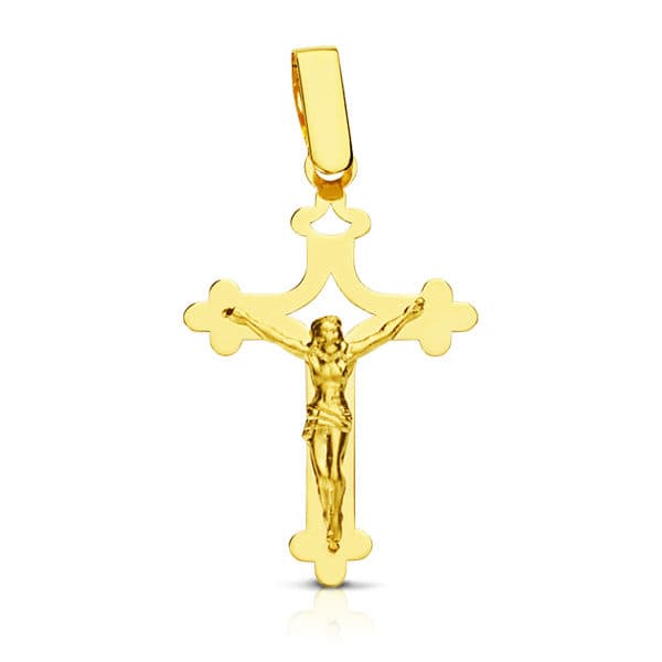 18K CRUZ ORO AMARILLO CON CRISTO GRANDE CALADA LASER