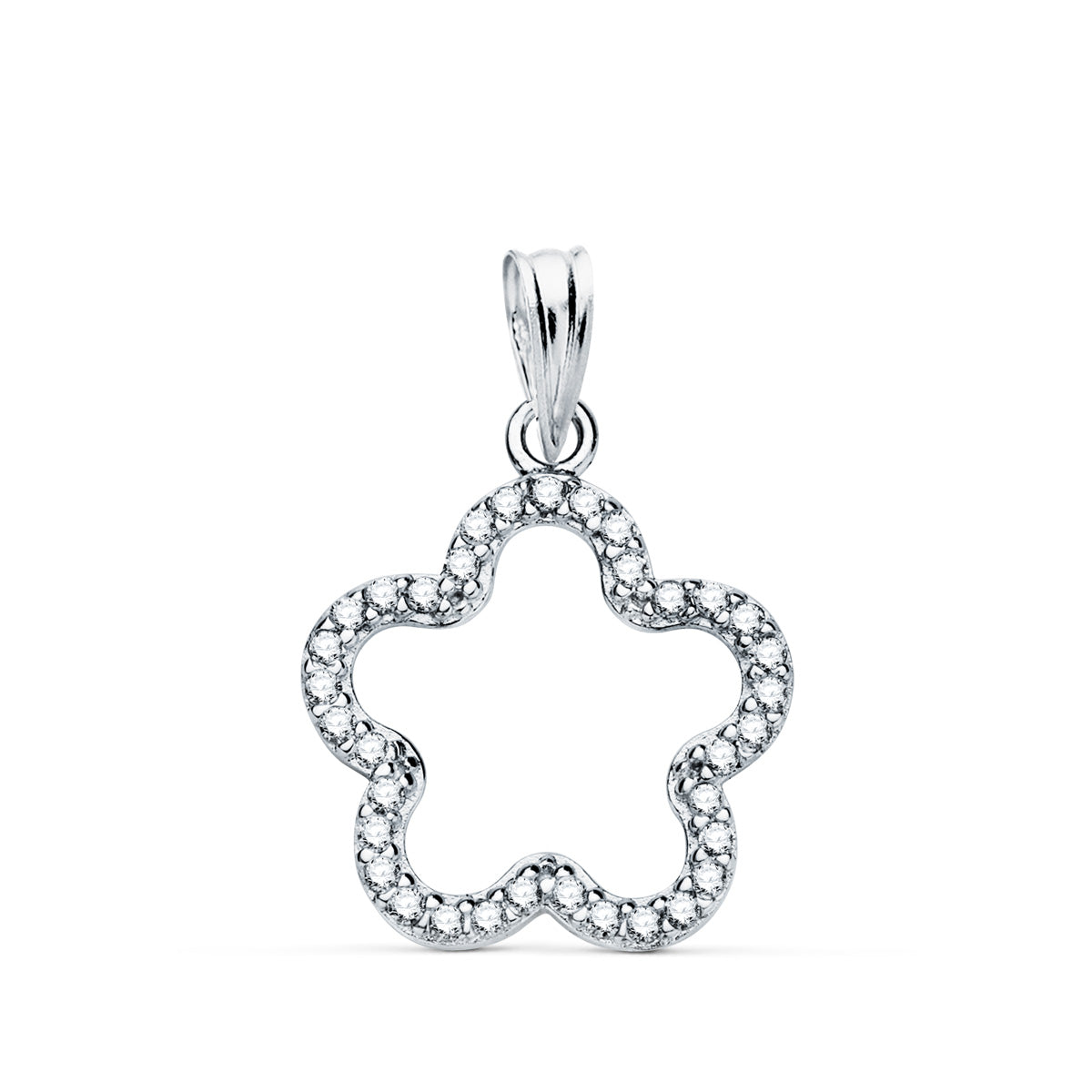 18K COLGANTE ORO BLANCO FLOR CIRCONITA 16 X 16 MM