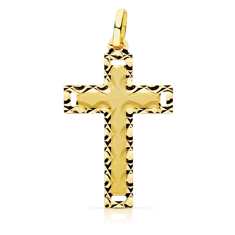 18K CRUZ ORO AMARILLO SIN CRISTO TALLADA 28X17 MM