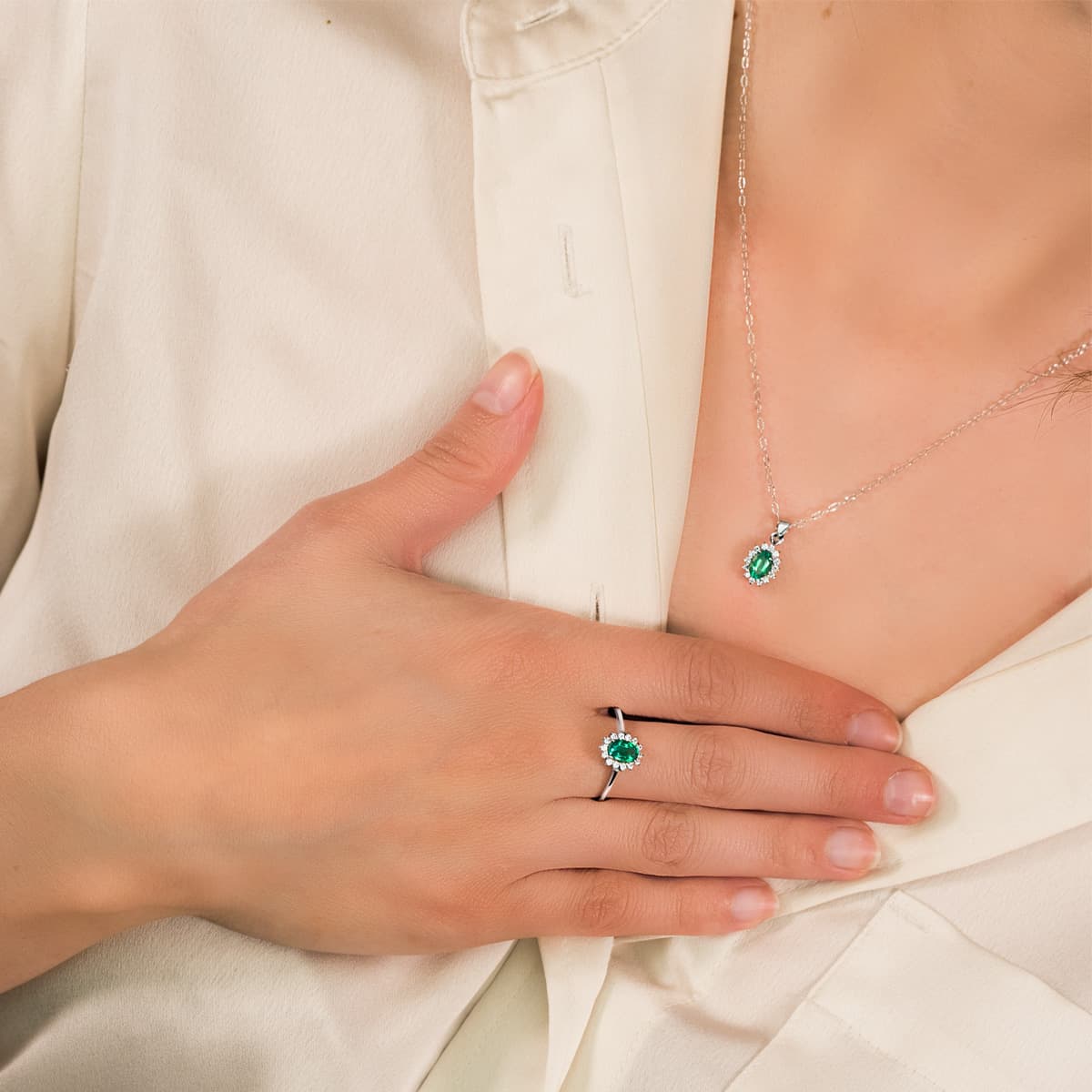 METAL: ORO BLANCO DE 18K / PESO: 1.04 GRAMOS / PIEDRAS: ESMERALDA / TIPO DE CIERRE: