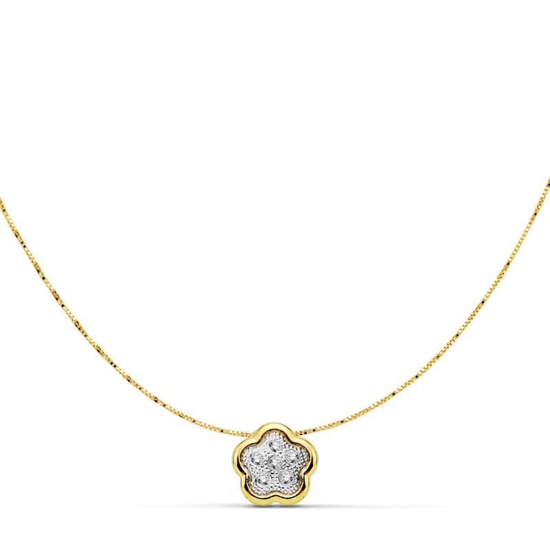 18K COLGANTE FLOR 8X8 MM CADENA ORO BICOLOR 42CM