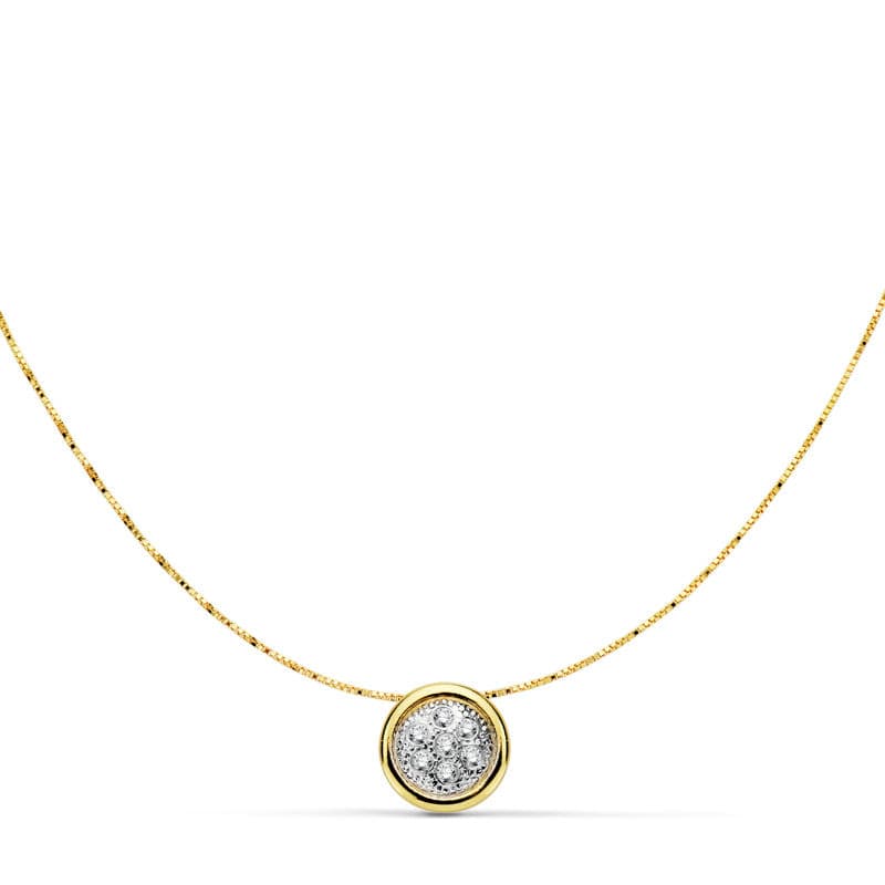 18K COLGANTE REDONDO ORO BICOLOR 8 MM CADENA 42CM