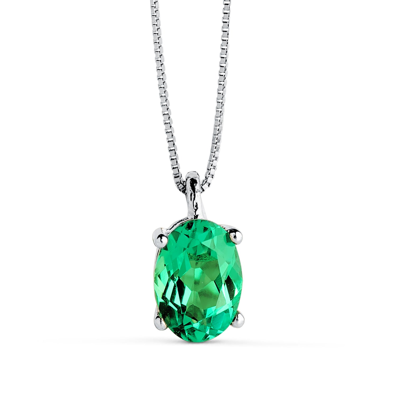 18K COLGANTE CON CADENA ORO BLANCO ESMERALDA RECRISTALIZADA 7X5 MM 0,79 QT. CADENA 42-3 CM