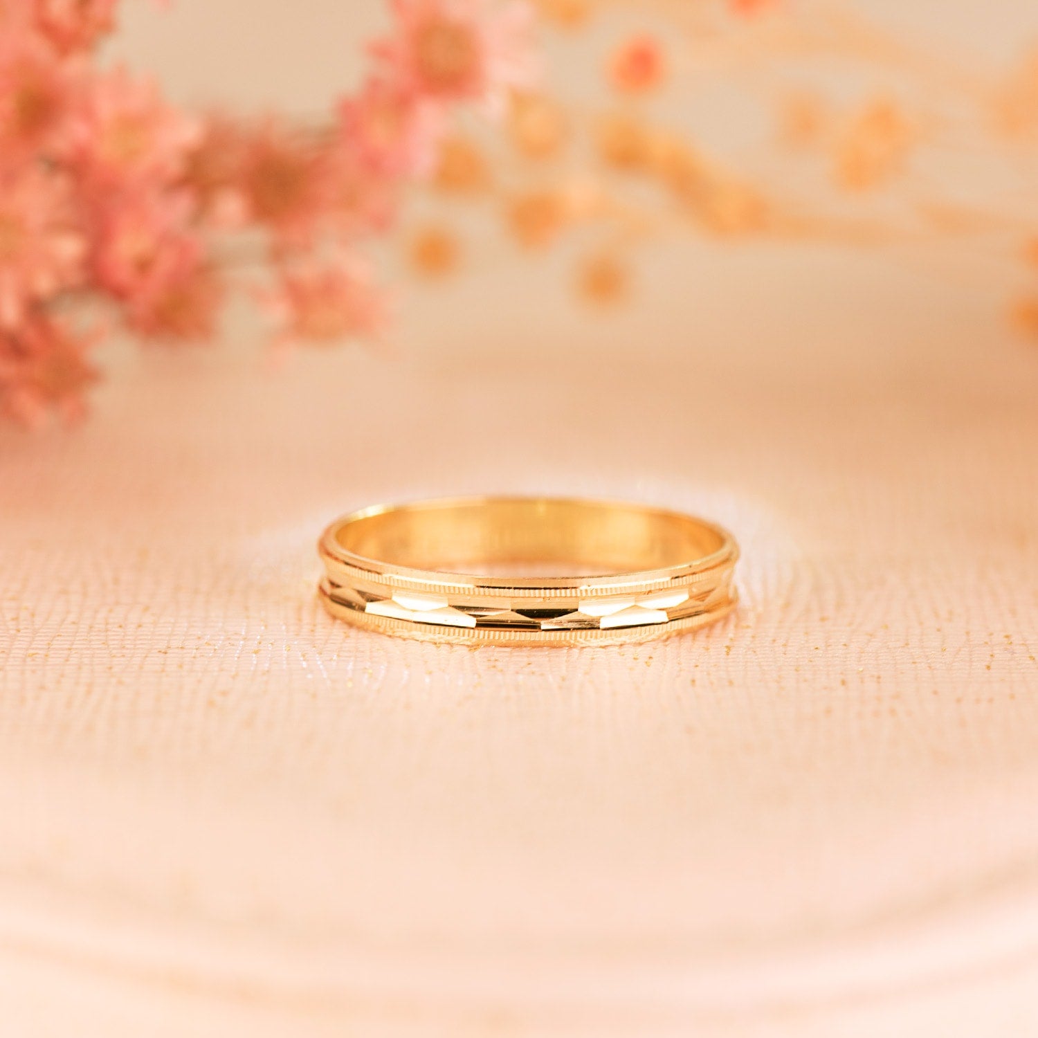 18K ALIANZA ORO AMARILLO TALLADA Y BORDES ESTRIADOS. ANCHO: 3 MM