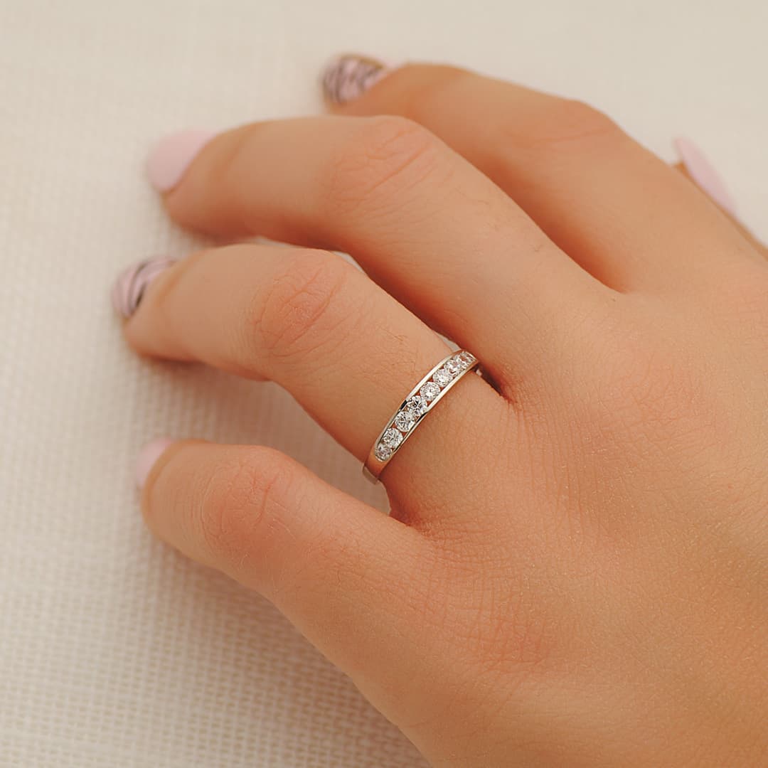 18K ALIANZA ORO BLANCO CARRIL CIRCONITAS. ANCHO: 3.5MM. TALLA: 9