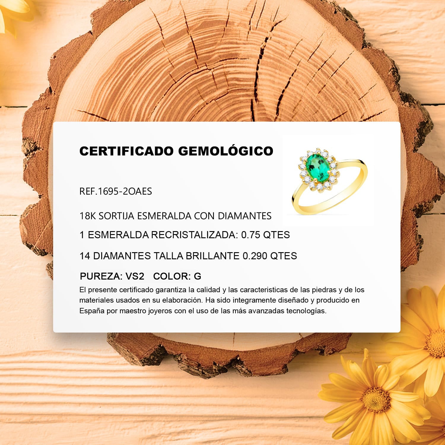 18K SORTIJA ORO AMARILLO ESMERALDA 7X5 MM 0,75 QTS. DIAMANTES 0,290 QTS. VS2-G 11,5X9,5 MM