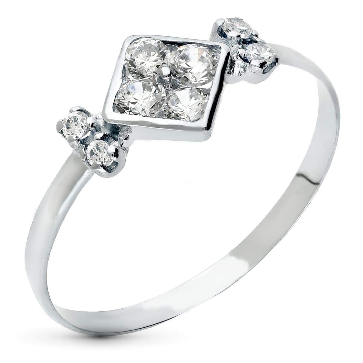 18K SORTIJA ORO BLANCO MOTIVO ROMBO CON CIRCONITAS. ANCHO 7 MM