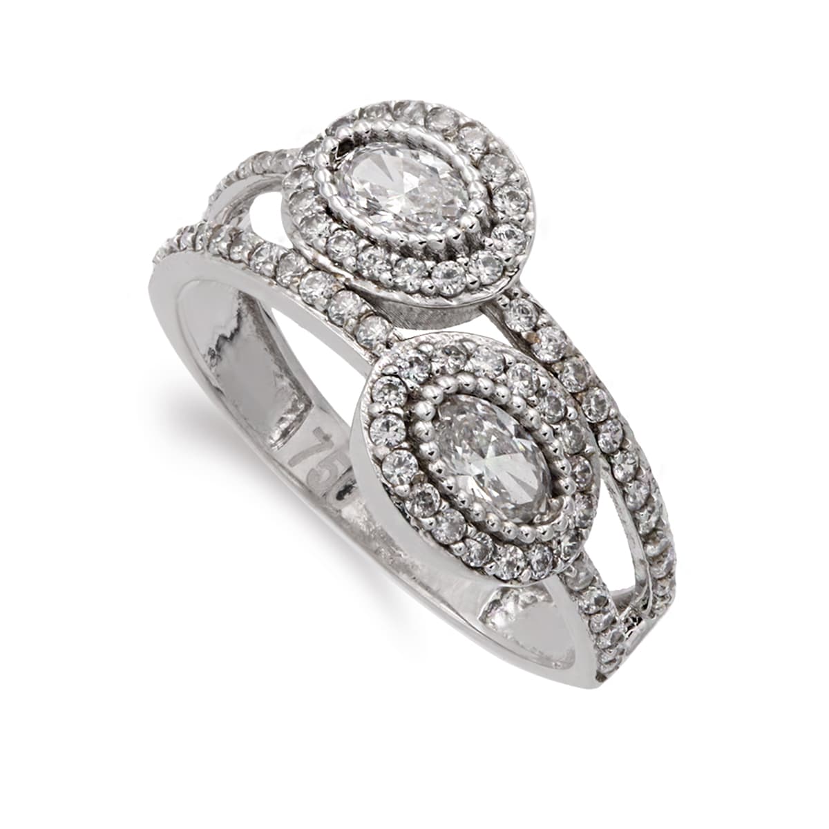 18K SORTIJA ORO BLANCO MOTIVOS OVALES CON CIRCONITAS. ANCHO: 10,5 M