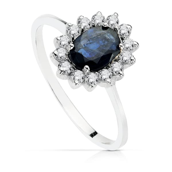 18K SORTIJA ORO BLANCO PIEDRA FINA ZAFIRO 7X5MM CON CIRCONITAS