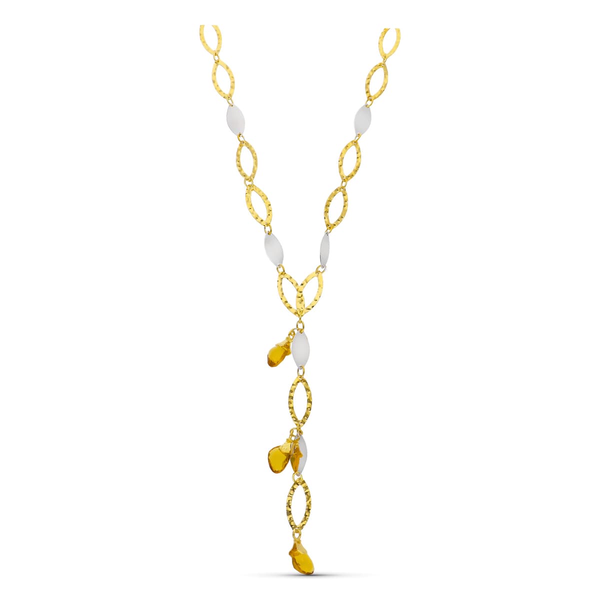 18K GARGANTILLA ORO BICOLOR ESLABONES OVALES Y PIEDRAS COLOR