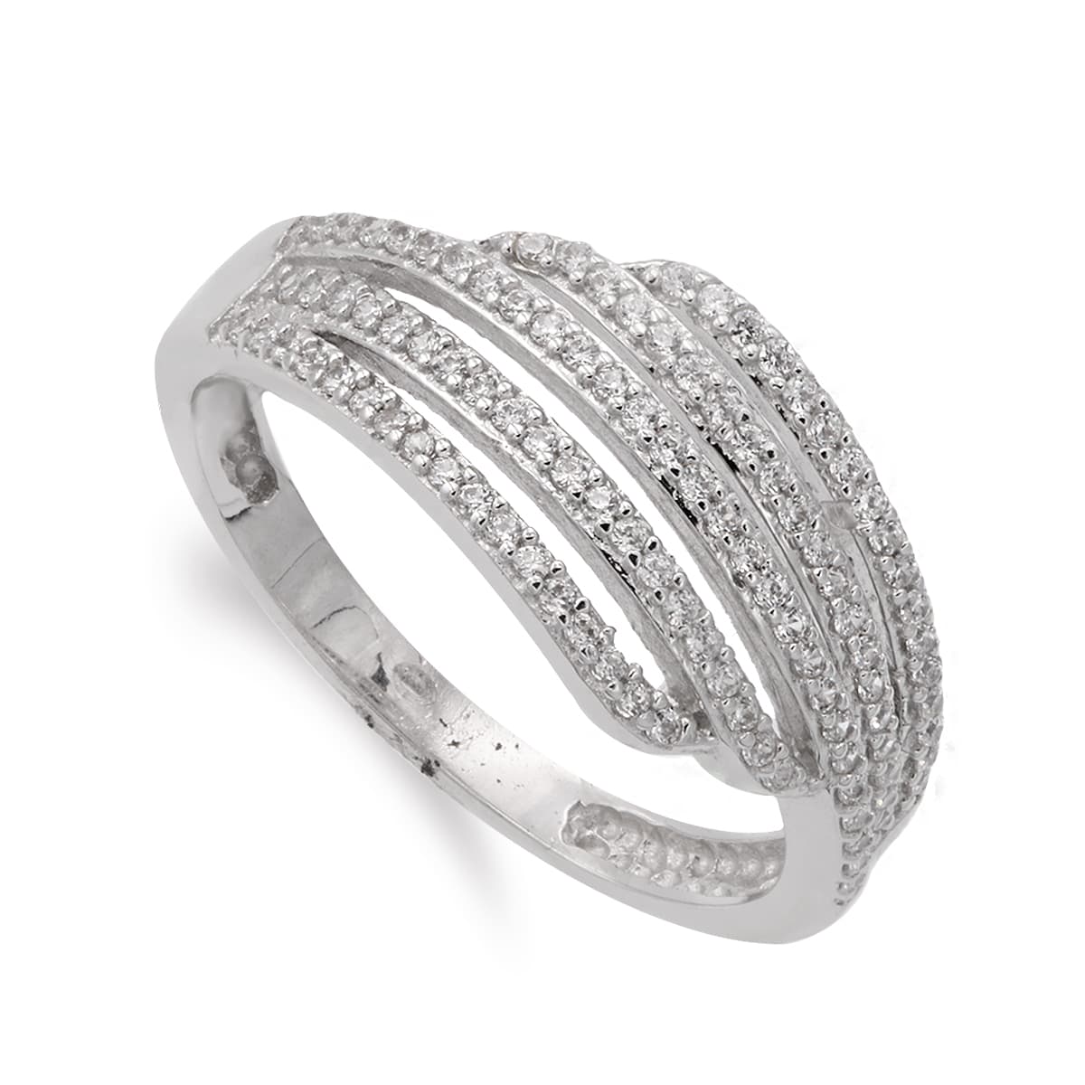 18K SORTIJA ORO BLANCO BANDAS CON CIRCONITAS. ANCHO: 7 MM