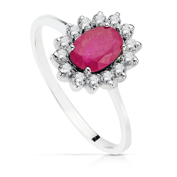 18K SORTIJA ORO BLANCO PIEDRA FINA RUBI 7X5MM CON CIRCONITAS