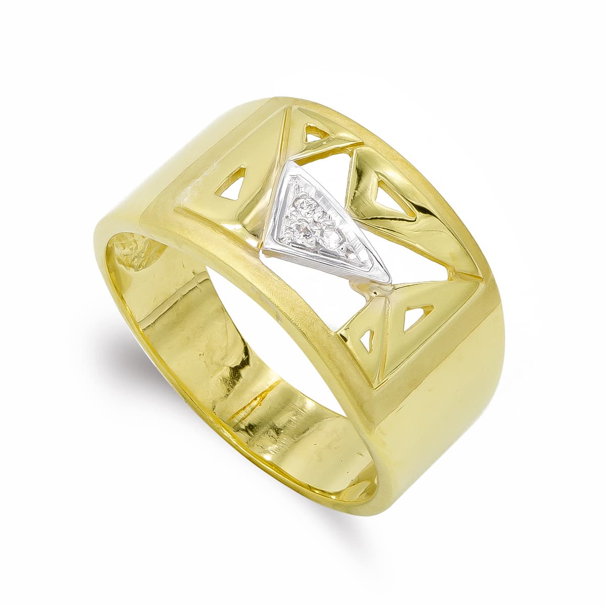 18K SORTIJA ORO BICOLOR MACIZA TRIANGULOS CALADOS. ANCHO: 11 MM