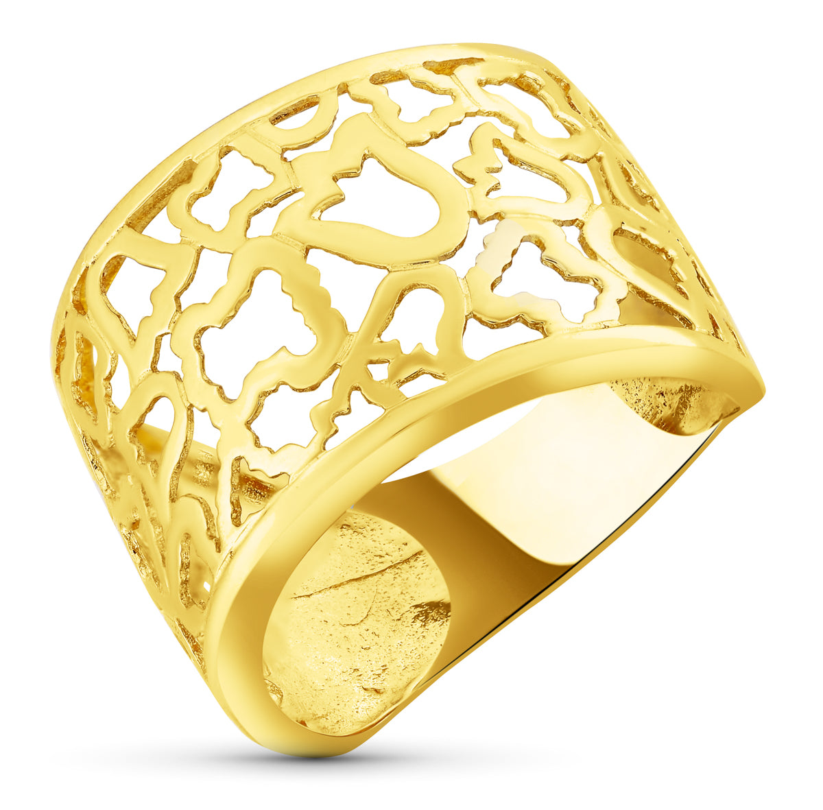 18K SORTIJA ORO AMARILLO OSOS Y TULIPANES CALADOS EN BRILLO. ANCHO: 15 MM