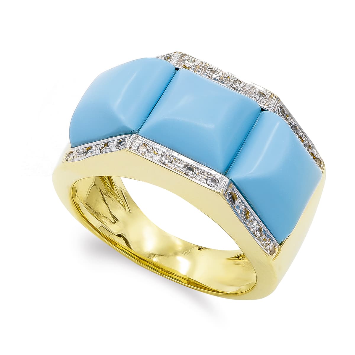 18K SORTIJA ORO AMARILLO TURQUESAS 8X8MM Y CIRCONTAS. ANCHO: 12MM
