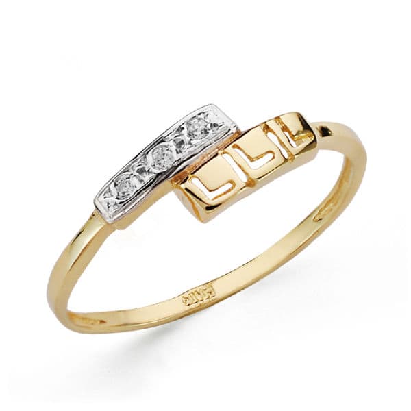 18K SORTIJA ORO BICOLOR CON MOTIVO CALADO GRECA Y CIRCONITA. ANCHO: 5,5 MM