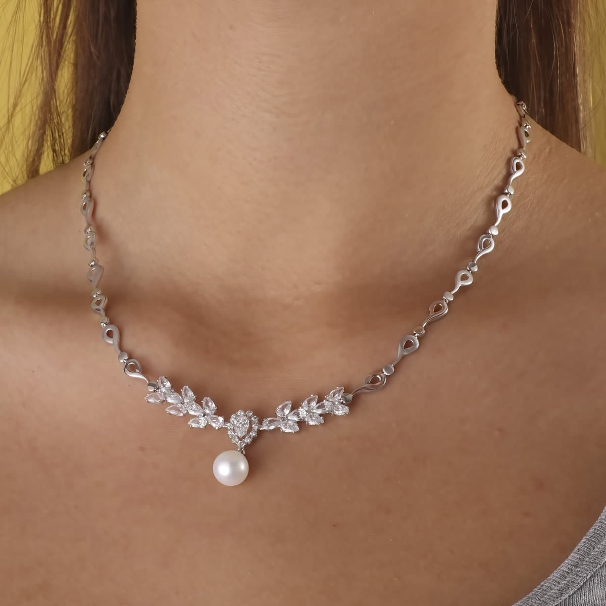 18K GARGANTILLA ORO BLANCO PERLA CULTIVADA 10 MM LONGITUD 45CM CIERRE MOSQUETON