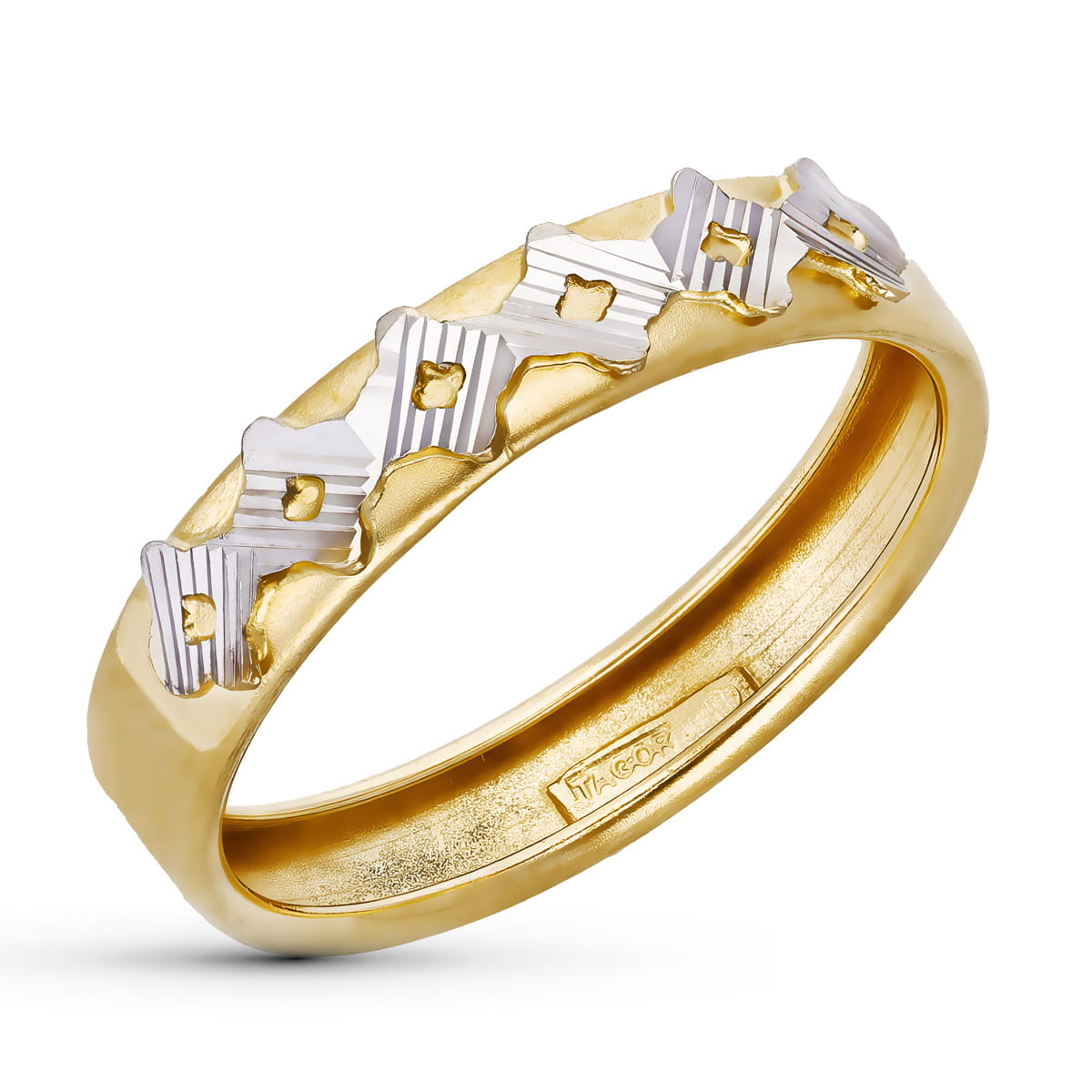 18K SORTIJA ORO BICOLOR MOTIVOS ROMBO TALLADOS. ANCHO 4 MM