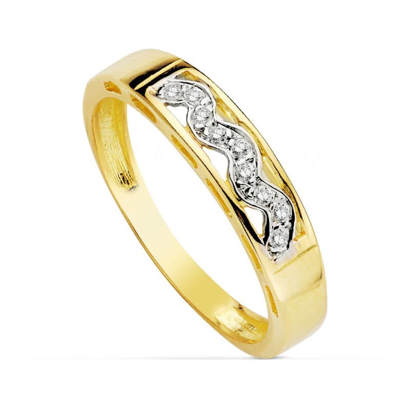 18K SORTIJA ORO BICOLOR MACIZA CALADA CON CIRCONITA. ANCHO: 4 MM
