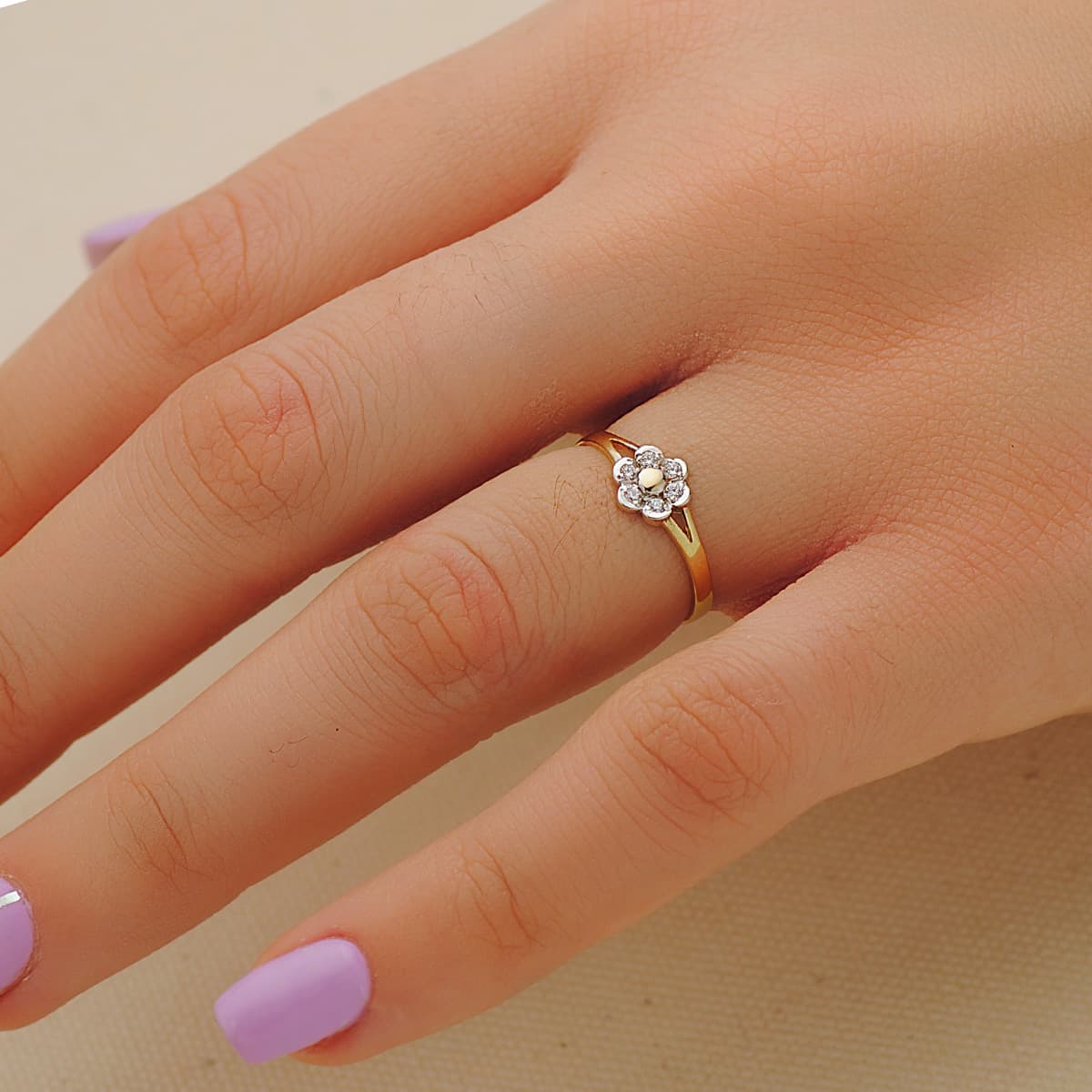 18K SORTIJA ORO BICOLOR FLOR CON CIRCONITA 13X7 MM ANCHO CUERPO 1.5 MM