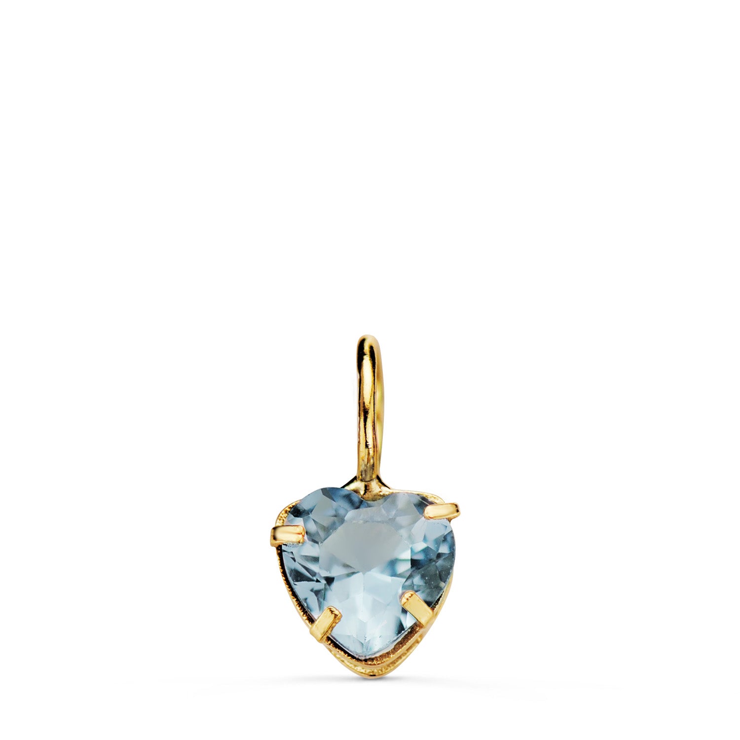 18K COLGANTE ORO AMARILLO CORAZON PIEDRA COLOR AGUAMARINA 5 X 5 MM.